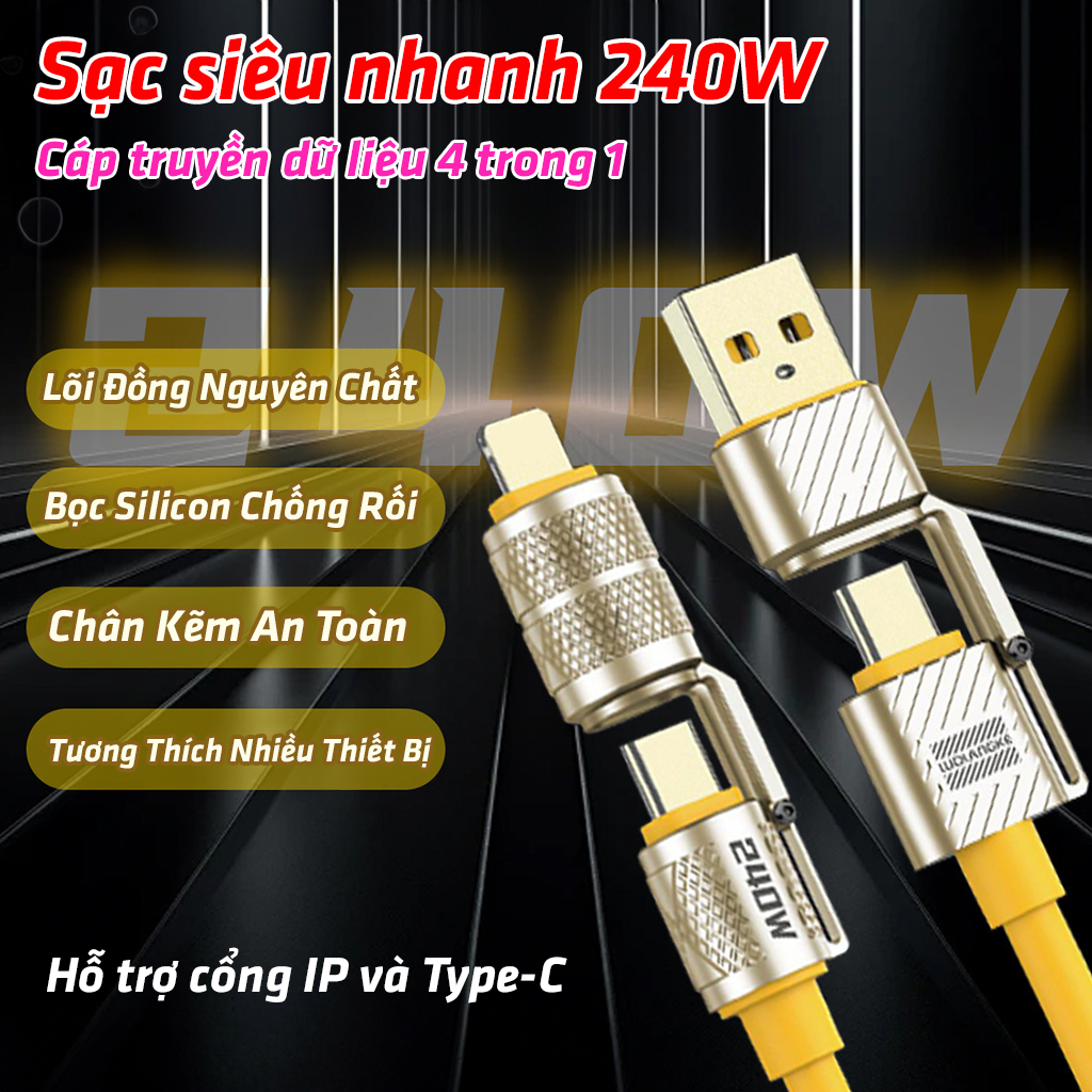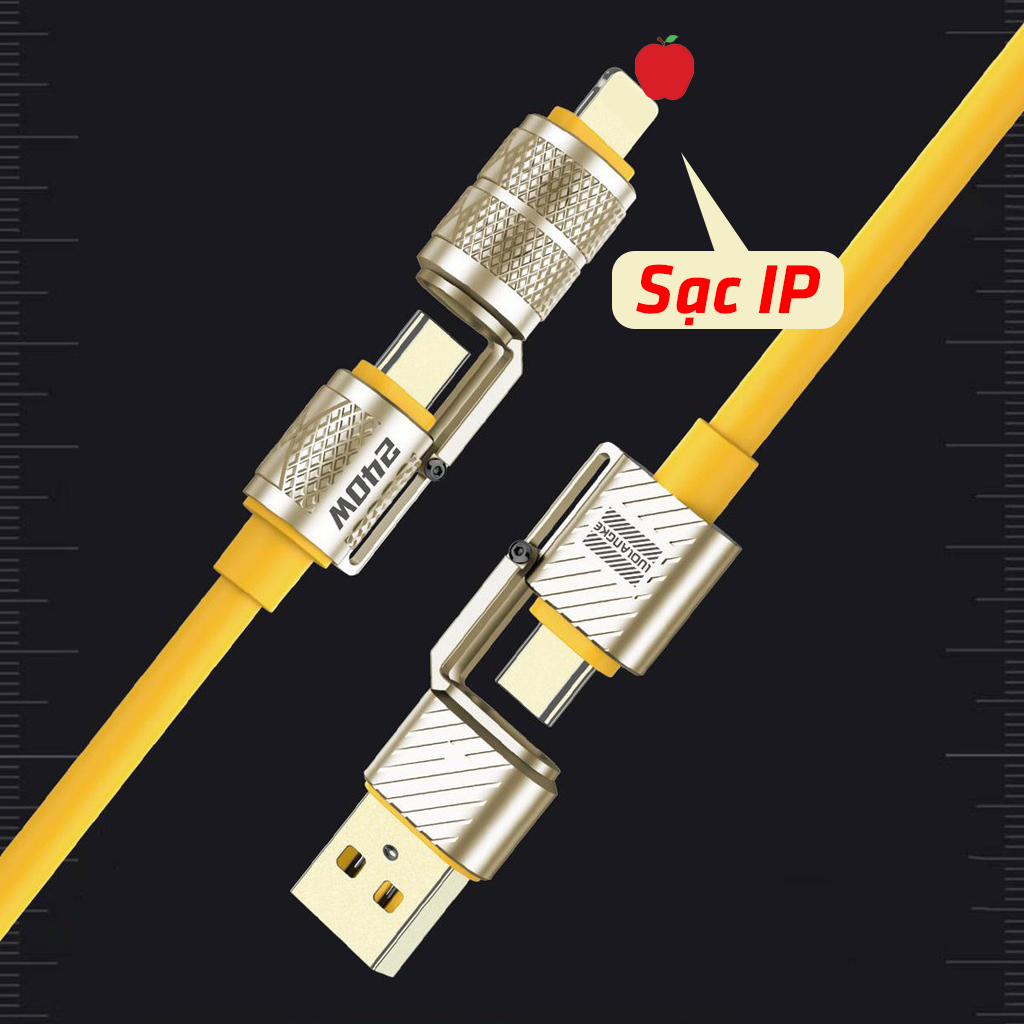 Cáp sạc 4 đầu, hỗ trợ USB A – Type C, USB A – L Type C – Type C, Type C – L