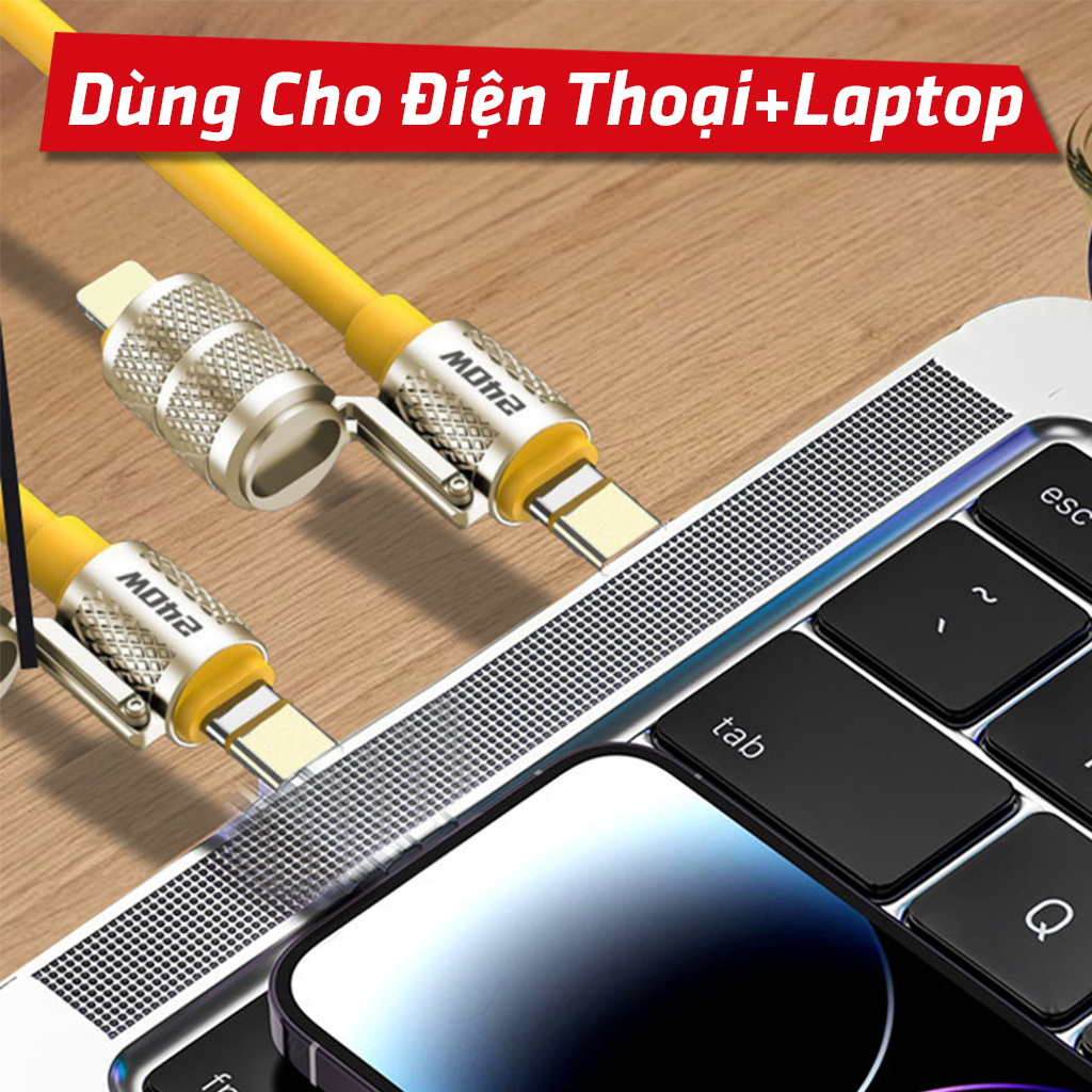 Dây sạc nhanh 4 in 1 27W lò xo sạc Usb-Type C , Type C-Type C, Type C – L USB – L – Đa năng đa dụng – PK Hoàng Gia