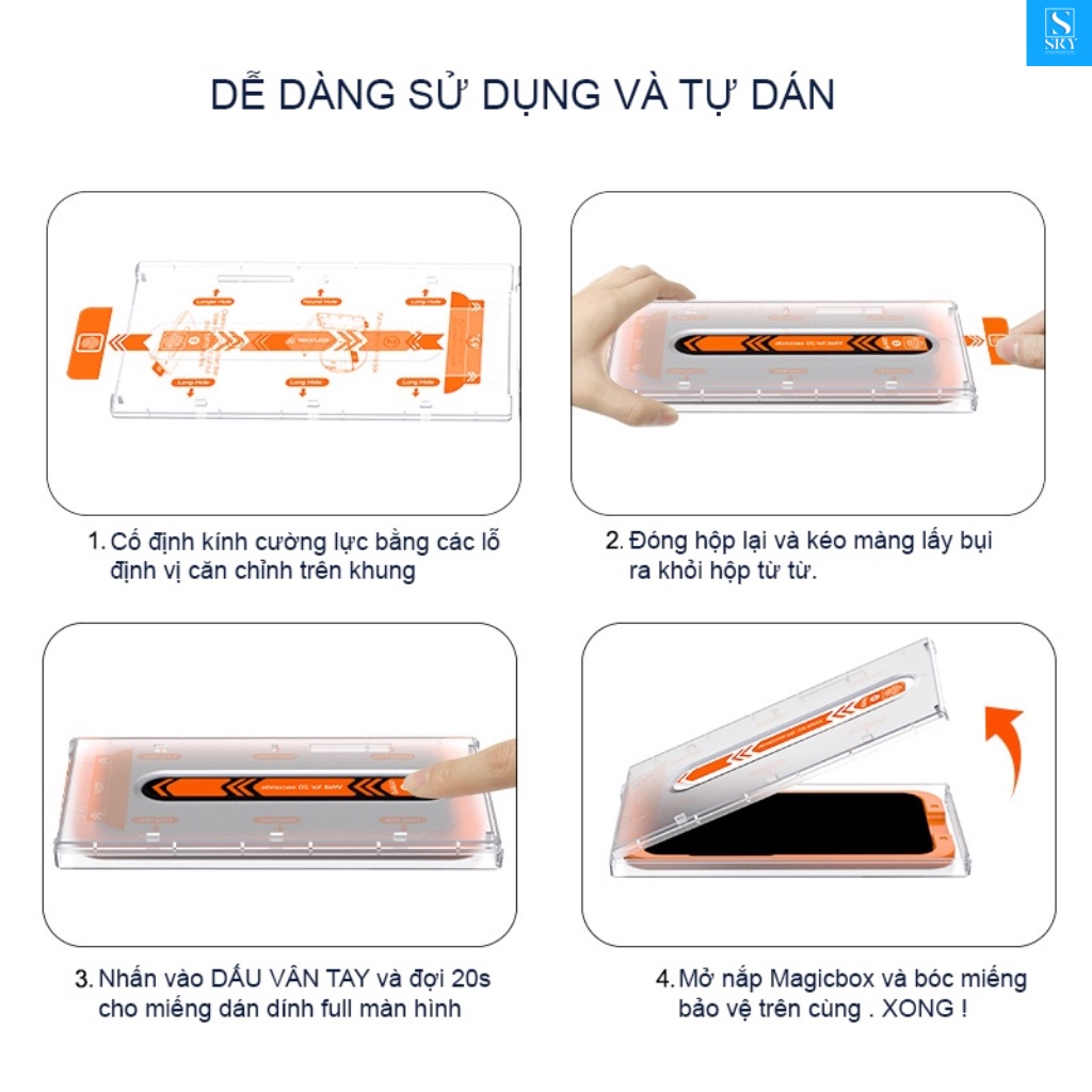 Khung dán tự động thông minh: Tự canh chỉnh chính xác, giúp bạn tự dán tại nhà cực dễ, không lệch, không nổi bọt.